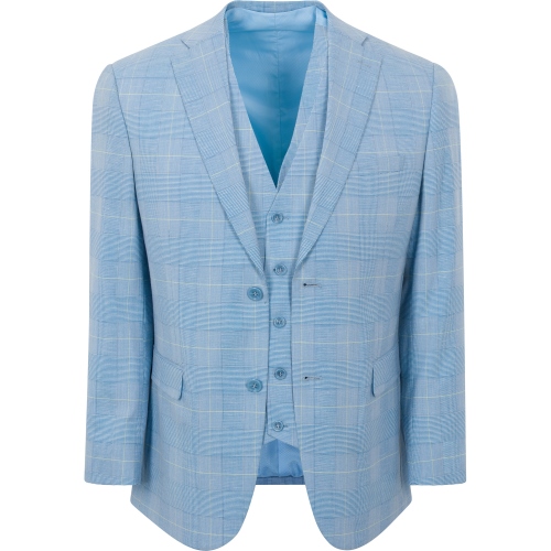 Harry-H 2B/SV/3" Notch/Stretch Armhole, Kenzo-C FF/15" Opening, V107-Slim 5B Vest/Back Belt+Buckle, Caravelli Slim, Men's Superior 150's Polyester/Viscose/Lycra Wool Feel Vested Suit. *Window